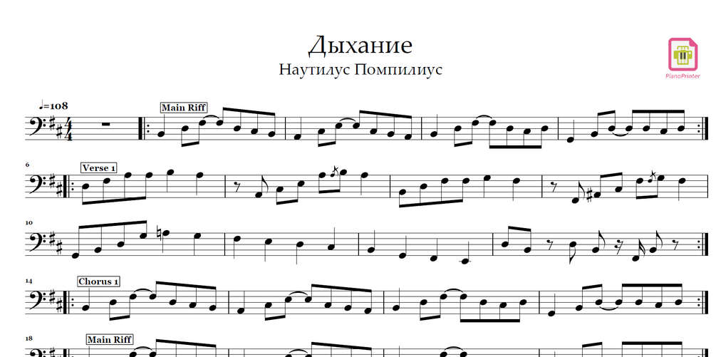 Наутилус Помпилиус - Дыхание Bass Табы & Ноты